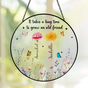 Friendship Gifts, Friends Gifts For Women, It Take A Long Time,Bestie Gifts, Best Friend Birthday Gifts, Birth Flower Stain Glass Suncatcher